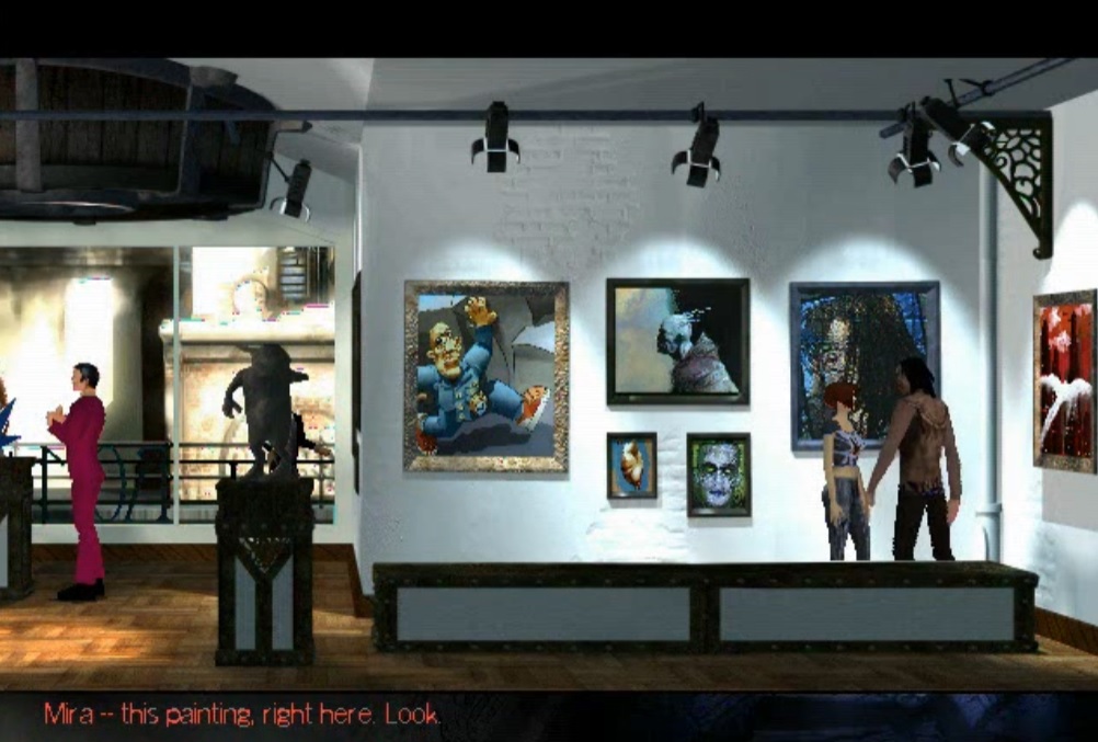 The story that slowly begins to unfold now is - in my opinion, that is - one of the greatest in adventure history. You slowly get to expore the game world, or one half of it, a well designed sci-fi metropolis shaped after East Village, New York, and various cities on the northern US Pacific coast. You also get to know a handful of interesting characters that you'll re-meet for a long portion of the game. April herself is an art student with a rough past and a lot of self-doubts. We follow her through parts of her daily routine when she experiences... "incidents", short visions that let her doubt her sanity until she learns that they weren't visions at all, that she has an ability she didn't have the slightest clue about, and that there's a whole other world waiting for her where she has to fulfill a task that's sheerly insoluble. Quite a lot to take in, eh? Well, it's not called "